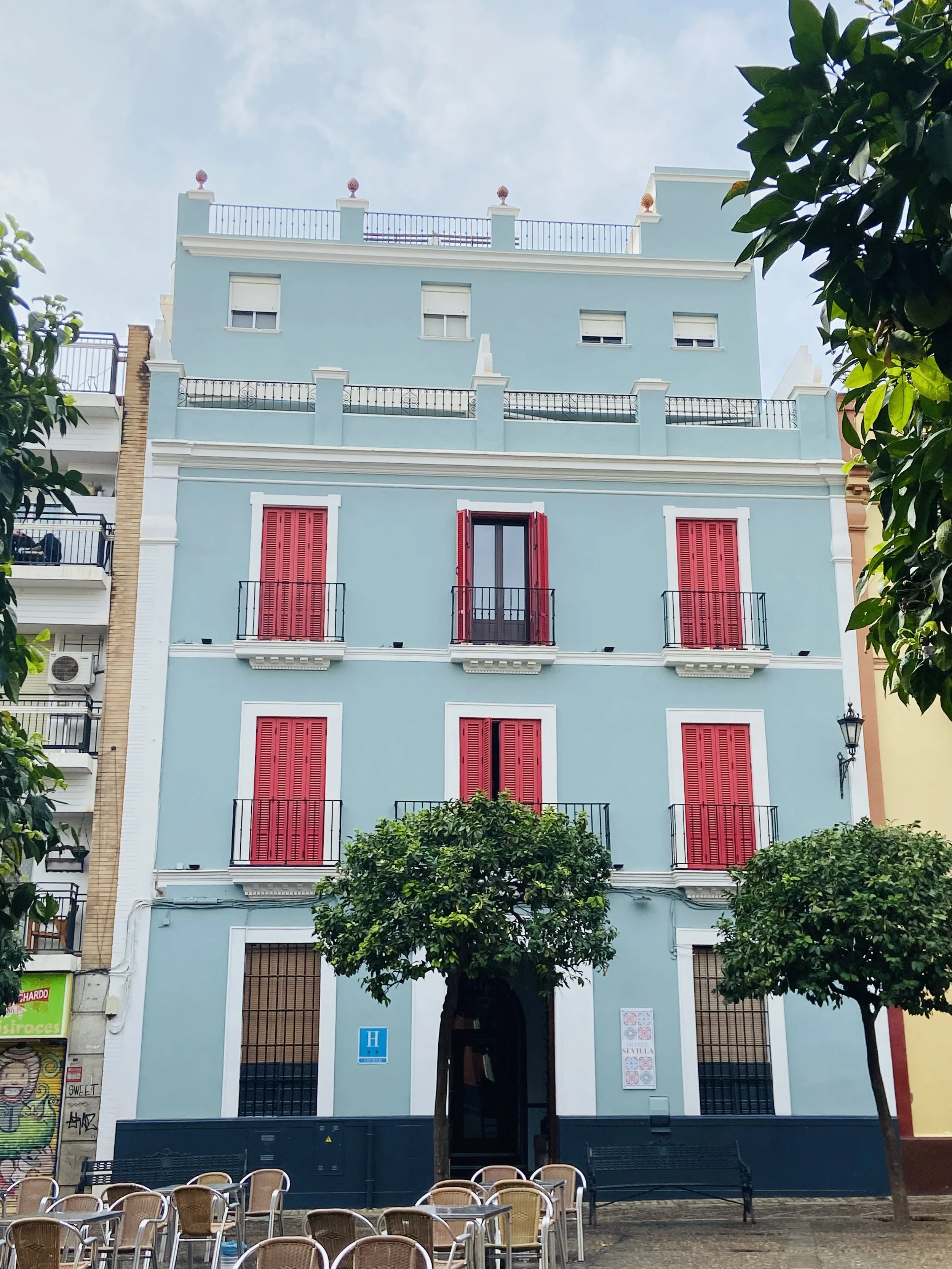 With full bellies we landed in Seville (Se – Vee – Uh) and I fell in love. If I didn’t have the strong pull I already felt in Barcelona I think that would have been my choice. The blooming orange trees lined colorful blocks, their plazas were grand and featured live music and dance, there are gorgeous parks and it just felt more intimate and livable.